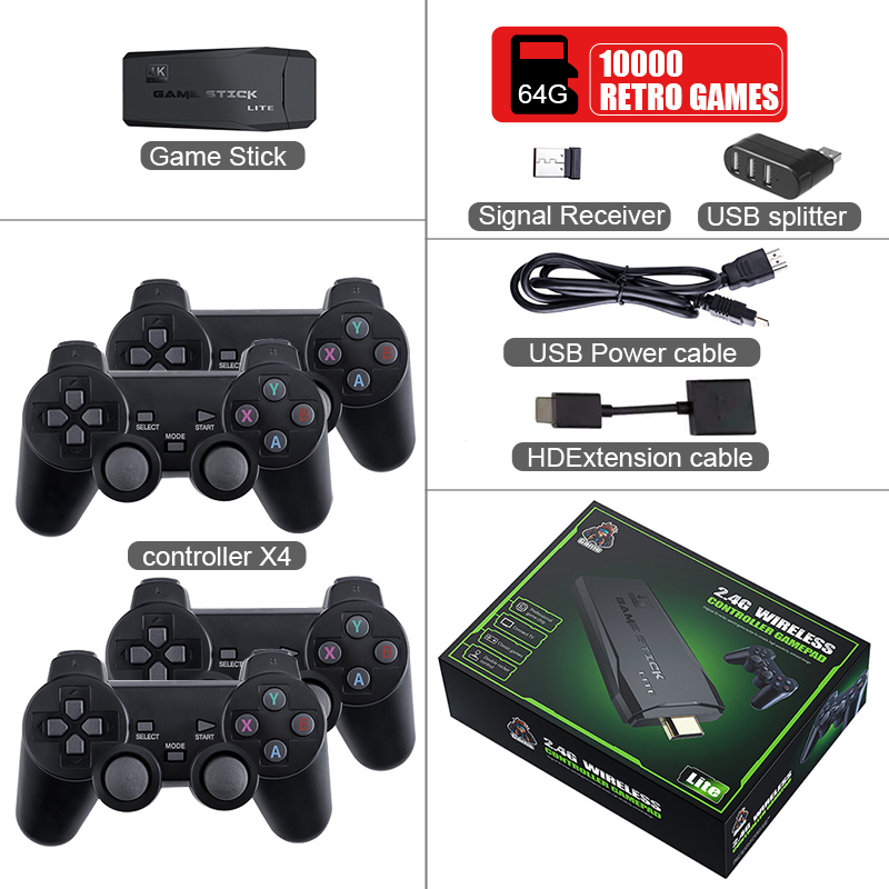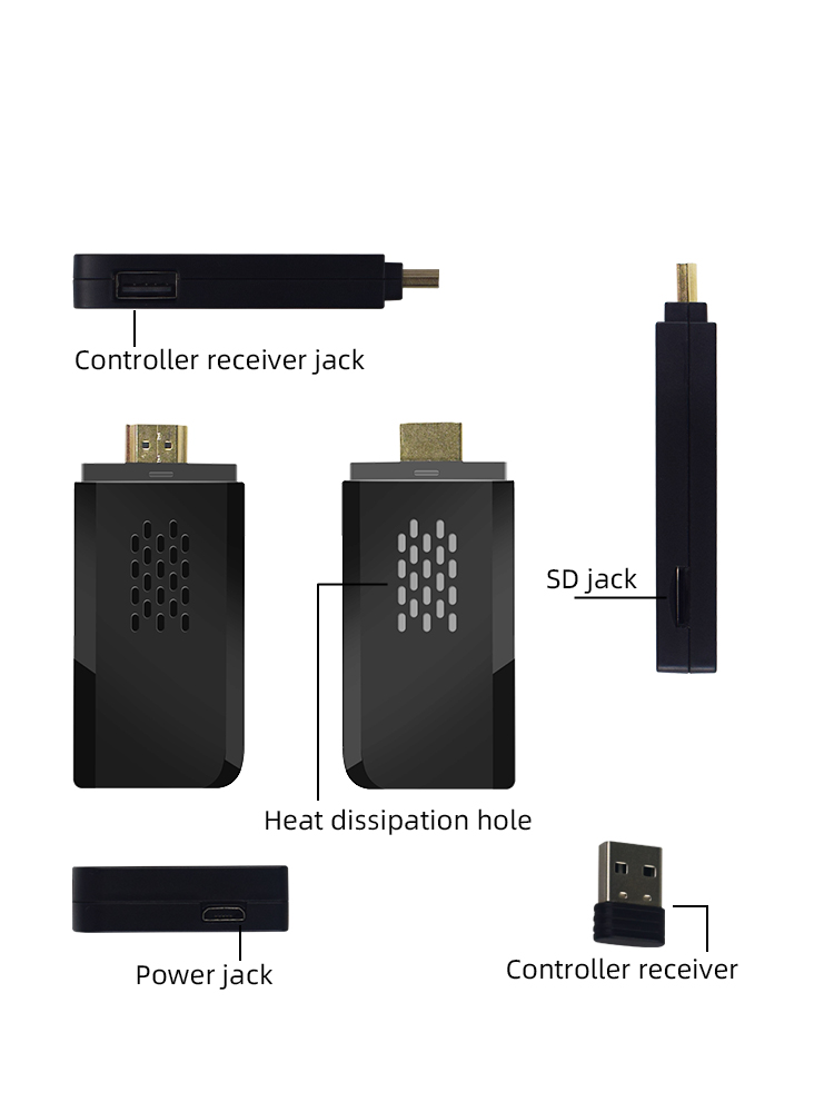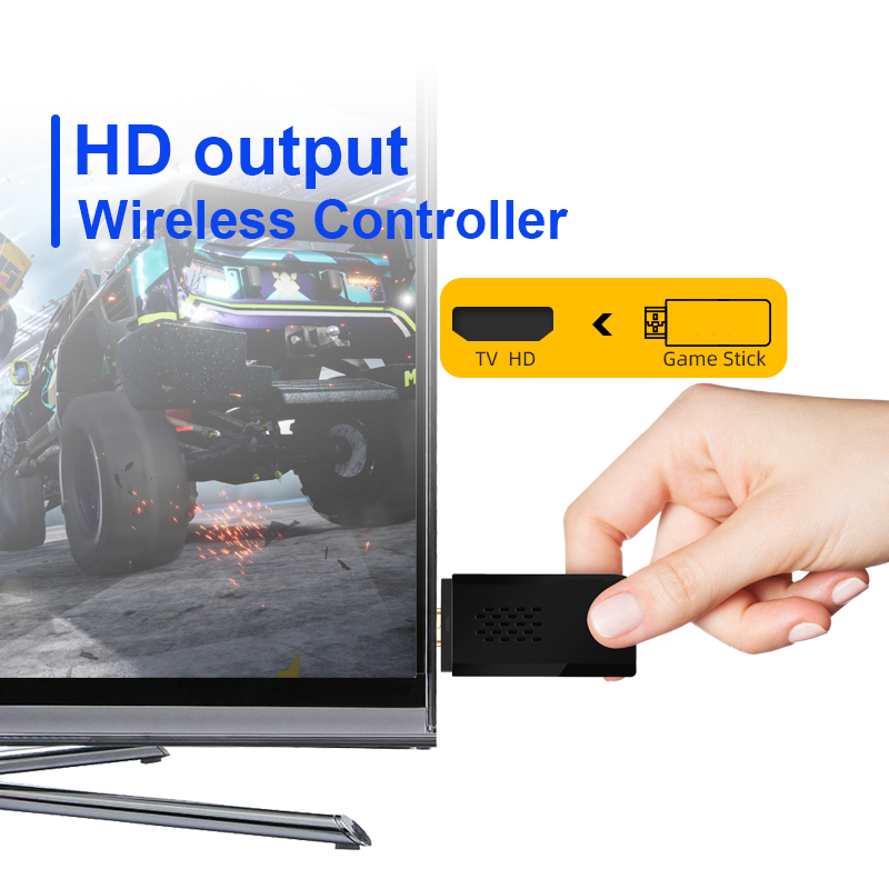 1 x Game Stick Console1 x Wireless receiver2 x Controller 1 x Charge cable1 x User manual1 x HD cableTF card (option)