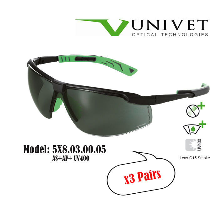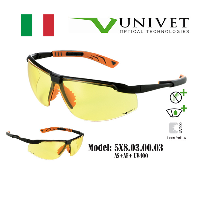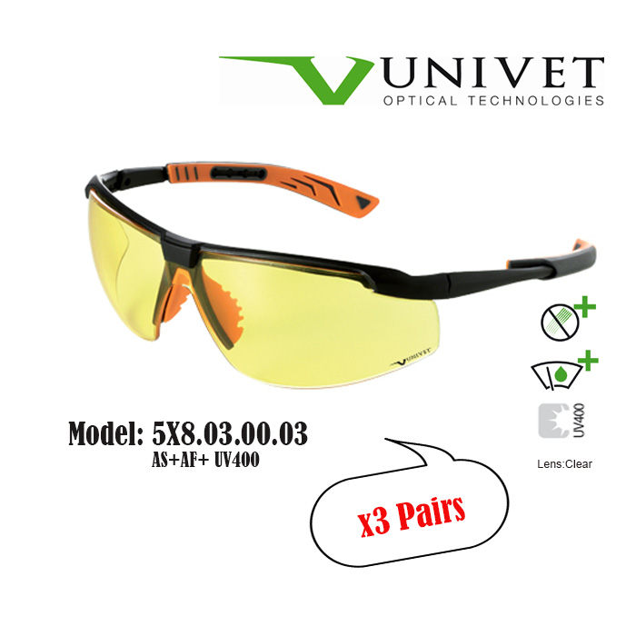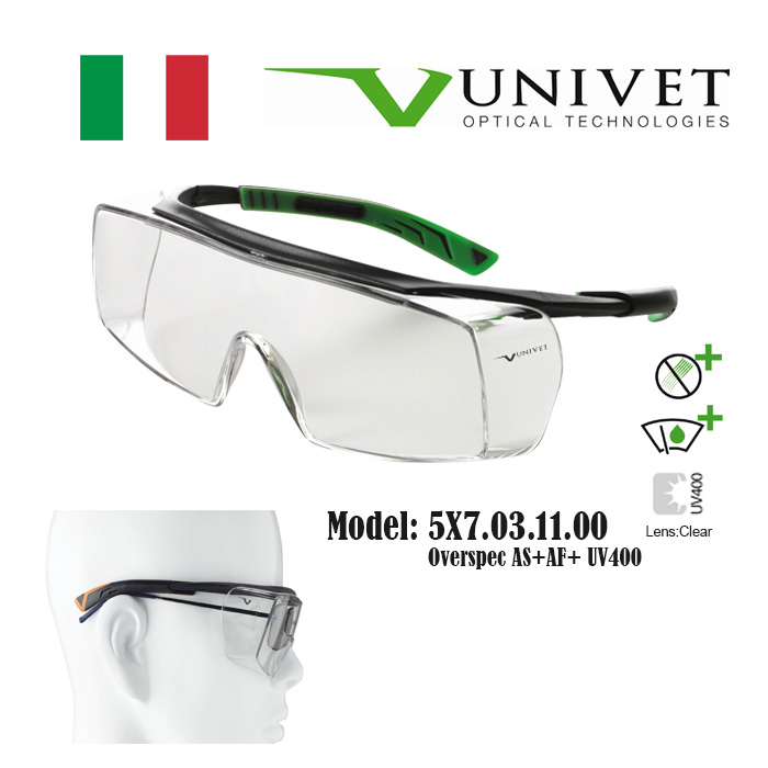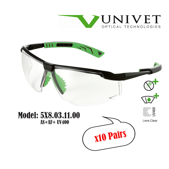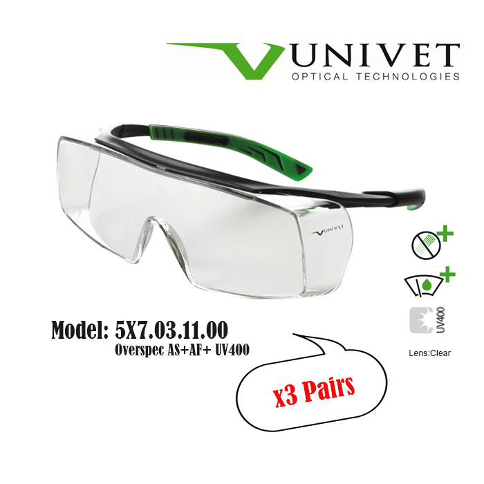 Univet 5X7,5X8 safety eyewear, spectacles for eye protection, adjustable specs, overspec OTG, impact resistant, anti-scratch, anti-fog, UV400 resistance, DIY, paintball, fishing, Gardening, Warehouse,