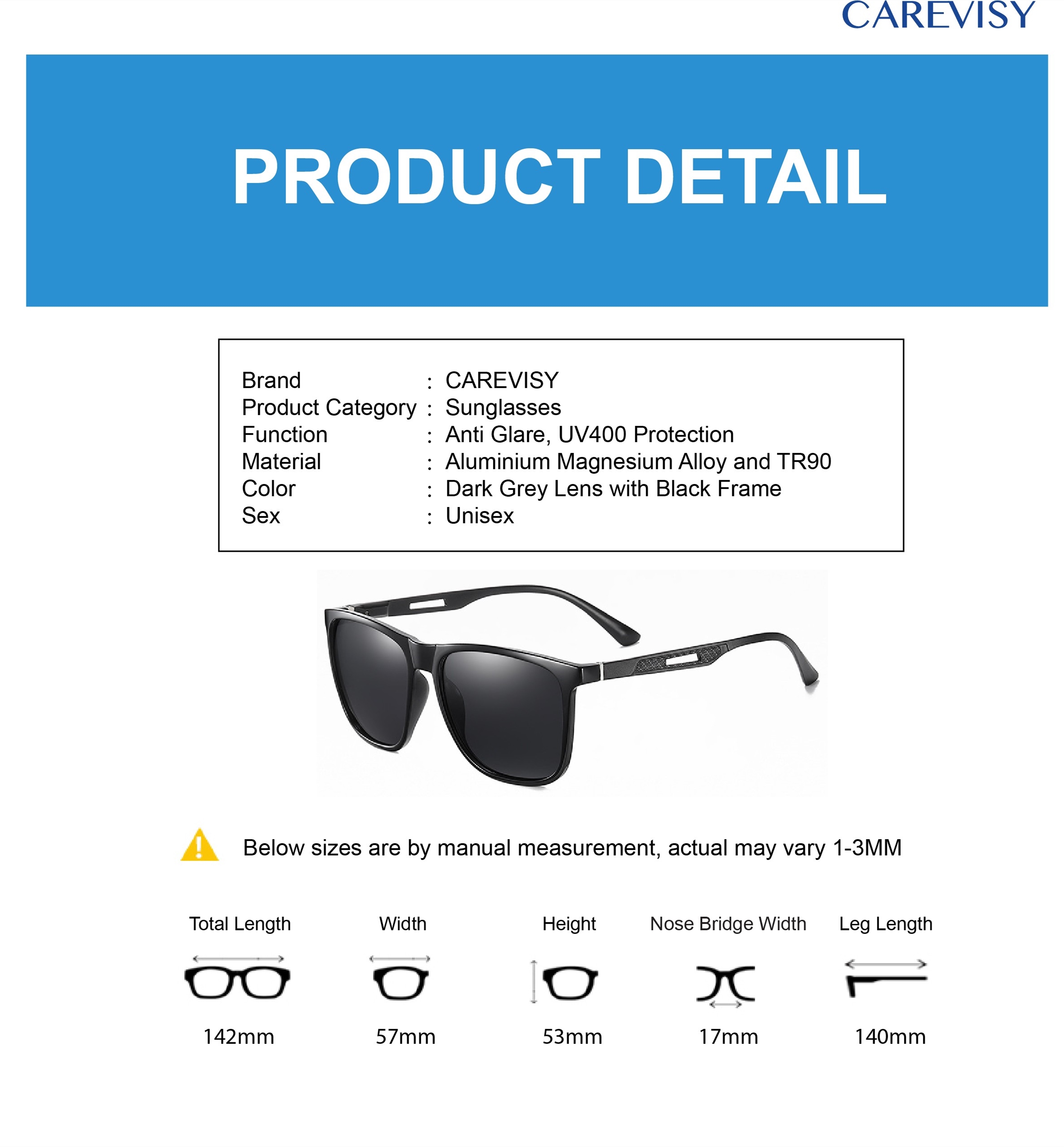 Welcome to CAREVISY, a professional Eyewear brand. We provide high quality Reading Glasses, Computer Glasses, Sunglasses and other Eyewear Accessories at affordable prices based in Singapore. Customer's satisfaction is our top priority. We valued customer's time and we will post out your order by next day. Afterwards, logistic team will pick up your parcel and delivery it to you, expected delivery time by logistic team is about 1-2 working days. Feel free to contact us if you have any queries. Care for your vision and enjoy your shopping now!