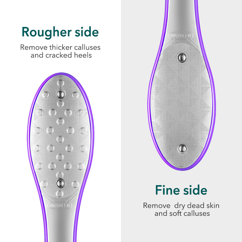 • Mr-2205 series foot file1. Double sided rough and fine surface design, more comprehensive foot care tools.Rough side: suitable for dealing with thick and hard calluses on sole and heel.Fine side: suitable for dealing with aging cuticles on the surface of feet and soles.2. Integrated molding technology, no burr on file surface, even and fine, durable.3. Medical grade stainless steel, nickel plating process, durable and anti-rust.