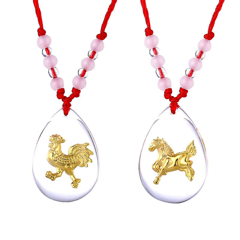 [RAYA STOCK] BAC 999 Gold Foil Chinese 12 Zodiac Cartoon Crystal Pendants /12 生肖水晶吊坠