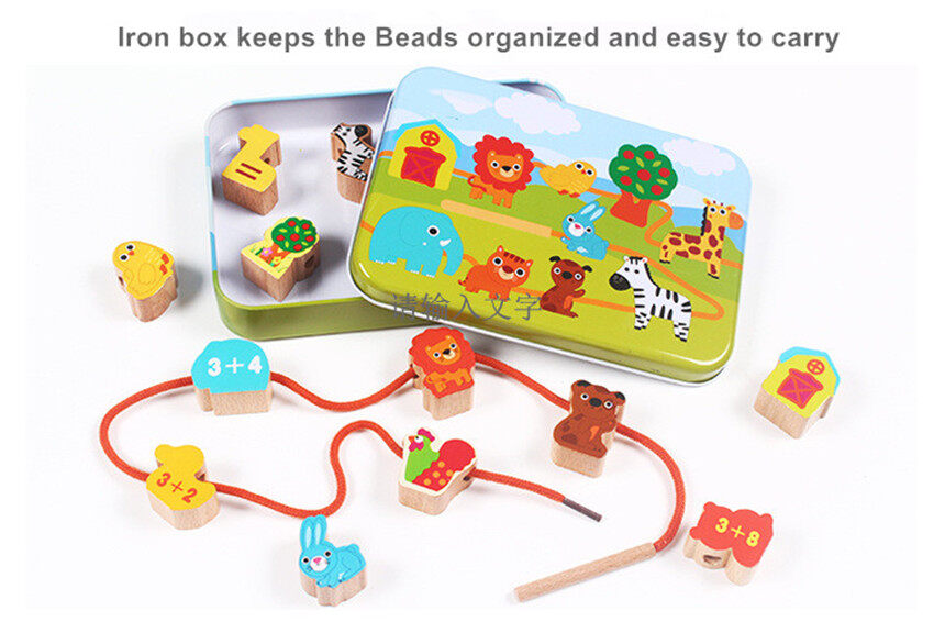 Moulty Wooden Lacing Beads for Toddlers, Fine Motor Montessori Toys for Toddlers 2 3 4 Years Old, Wooden Toys Animals Fruits Vegetables for Kids,Preschool Educational Activities Gift for Boys Girls
