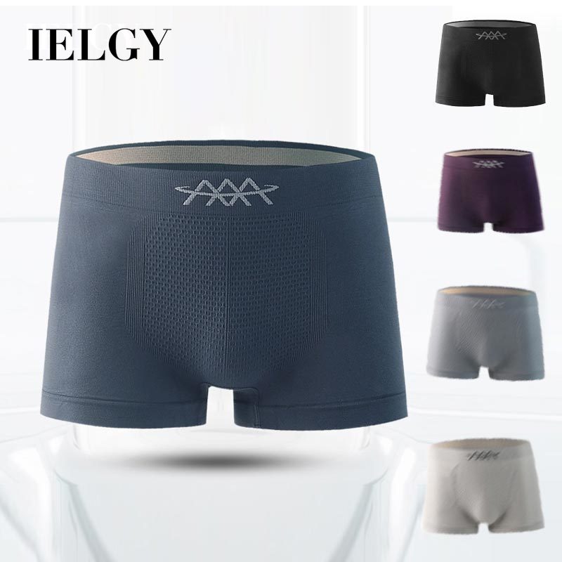 IELGY【40-75KG】men's underwear mid-waist four-corner high-elastic breathable sweat-absorbent mid-waist seamless 5D honeycomb boxer briefs