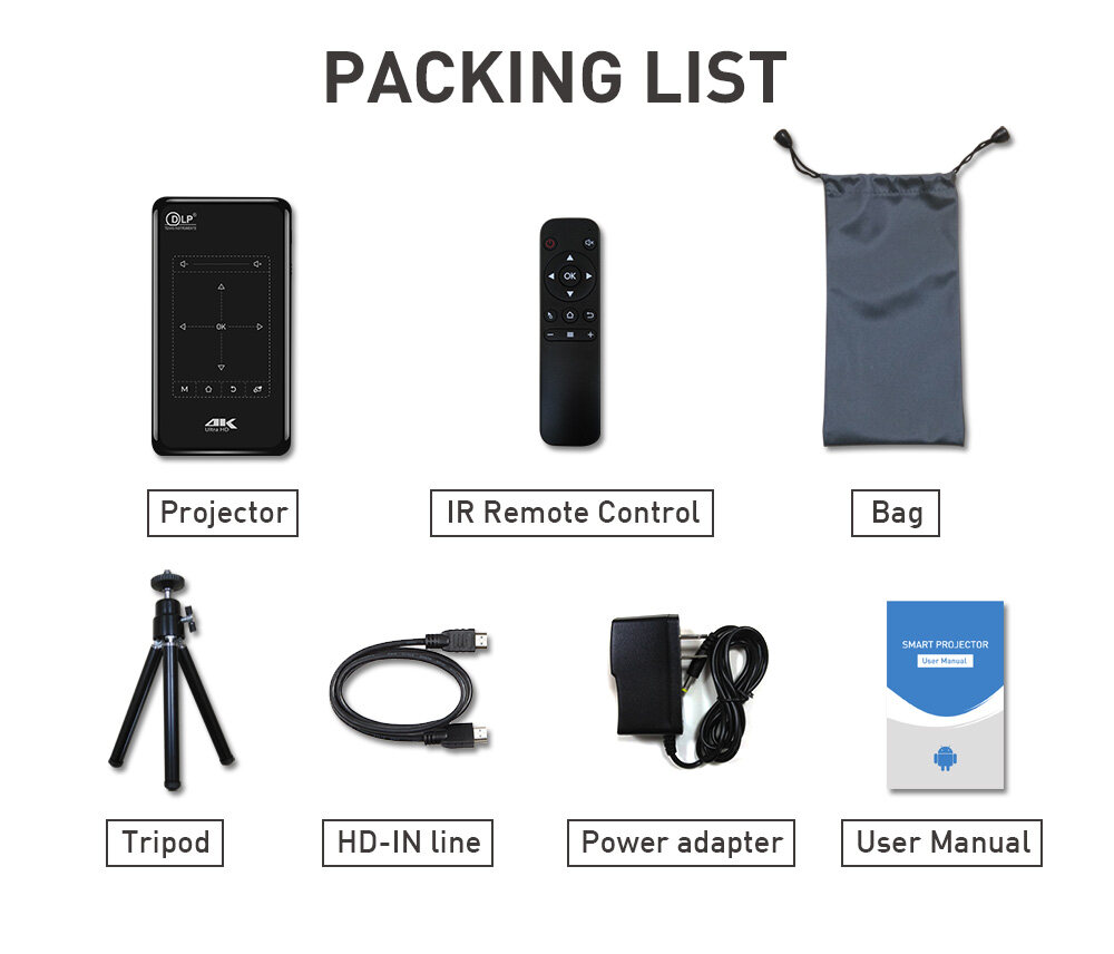 The projector uses DLP display technology,HD 4K decoding with 200 inch giant screen.