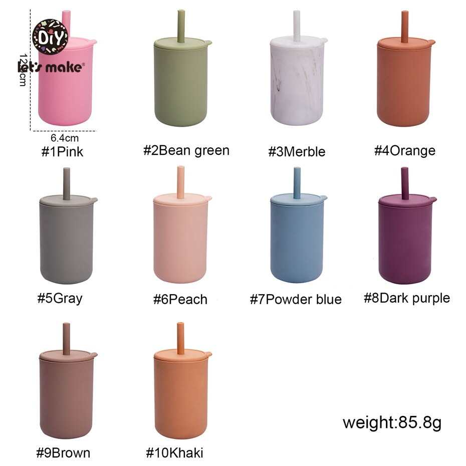 Let's Make Silicone Cup 1PC High Temperature Disinfection Sippy Cups with Cover and Straw Baby Feeding Stuff