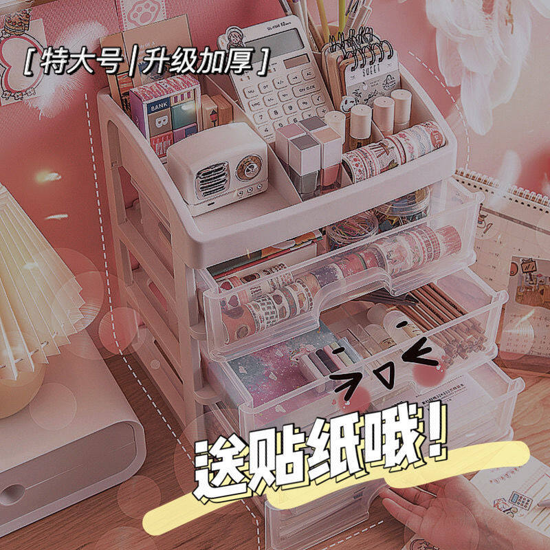 SKE307 【READY STOCK】 ins girl heart desktop drawer type student dormitory makeup storage box desk tape stationery multi-layer storage box