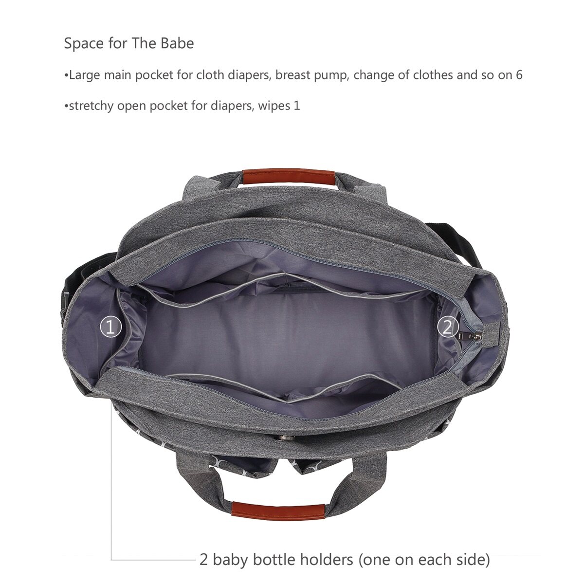 Ease Of Use: Everything is still easy access and convenient to put away, organized space for mom and baby, separate pockets for not only diapers, nursing cover, and wipes, but also for your wallet, keys, sunglasses, and other toiletries