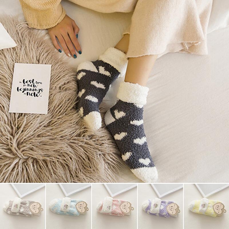 Aryio Women Bed Socks Love Heart Fluffy Warm Winter Gift Soft Floor Socks