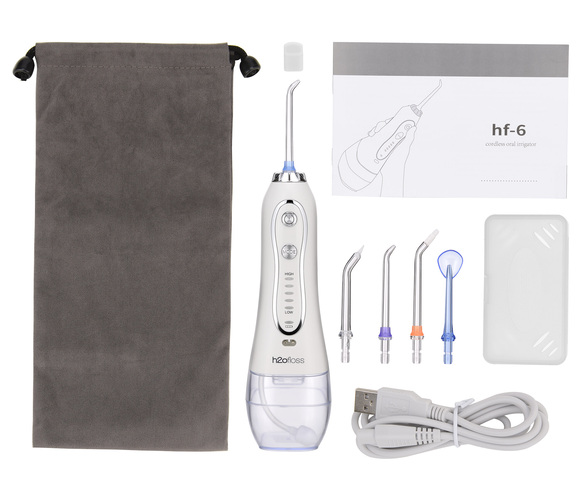 H2ofloss Portable Oral Dental Irrigator Cordless Wate Flosser Waterproof Teeth Cleaner with 5 Modes 5 Jets Tips and 300ml Detachable Reservoir Rechargeable Dental Flosser for Brace Bridges Care, Home