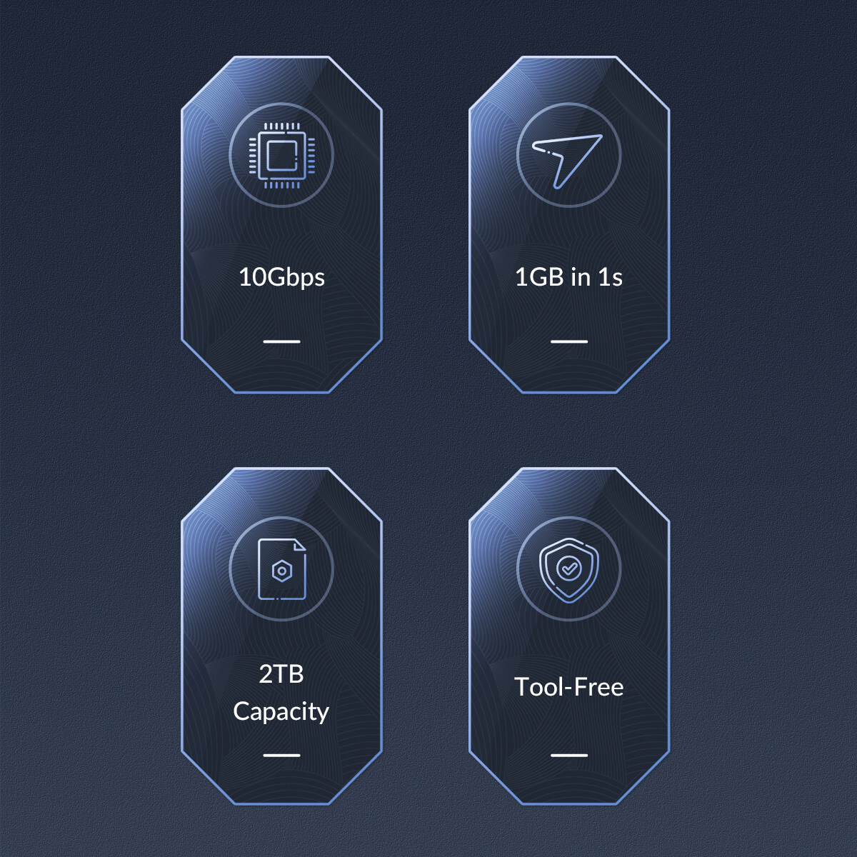 7.Cool RGB lighting design (the red light is always on without the SSD installed when the power is on; the standby red, yellow, green, blue, and purple alternately switch slowly, and the reading and writing flashes quickly; the sleep blue breathing).