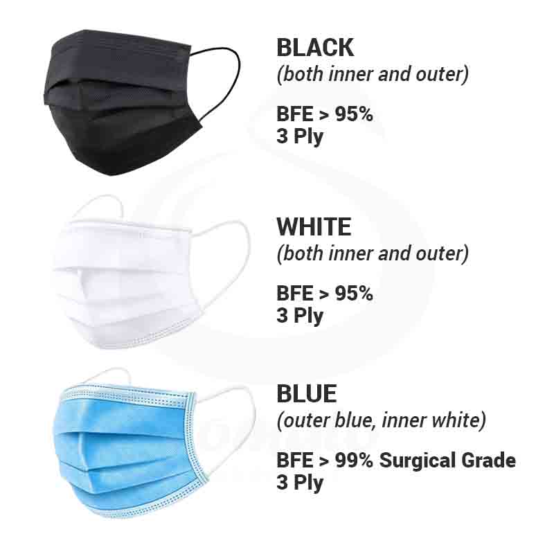 Black and White (BFE>95%) - Comes in a pack of 50pcs with clear bag and certificate