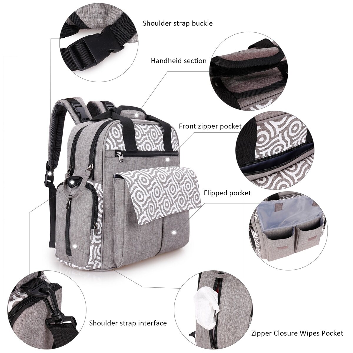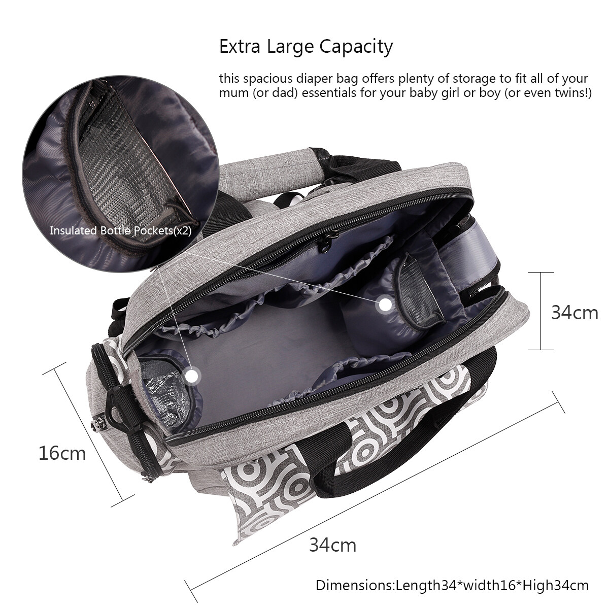 Accessories: diaper pad, thermos bottle bag, shoulder strap
