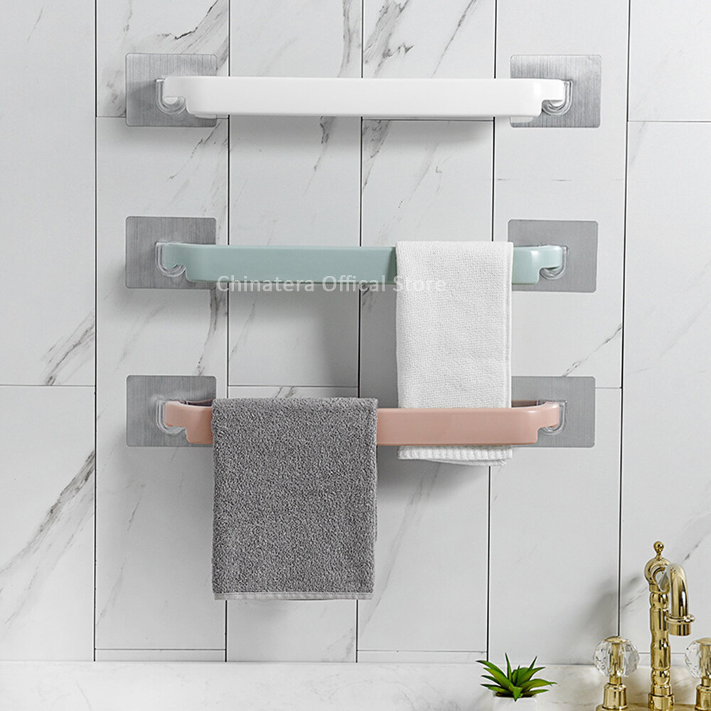 [Chinatera] Punch Free Wall Mounted Towel Rack Self Adhesive Hanging Towel Hanger Bathroom Towel Rail Rack
