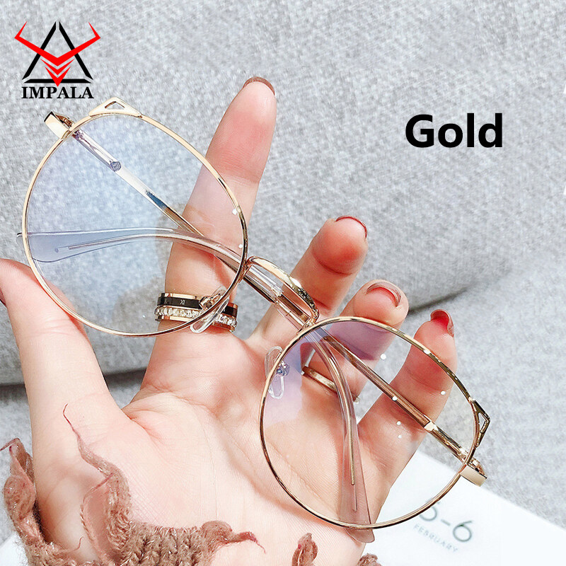 IMPALA FL1617W Cute Cat Ear Anti Blue Glasses for Girl Korean Style Anti Fatigue Eyewear Women UV400 Filter Resin HD Lens Glasses Protect Eyes