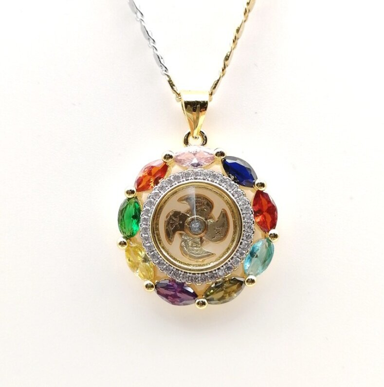 Thai Lucky Windmill wheel Amulet Powerful Enhance Good Fortune adjustable Gold Silver Necklace