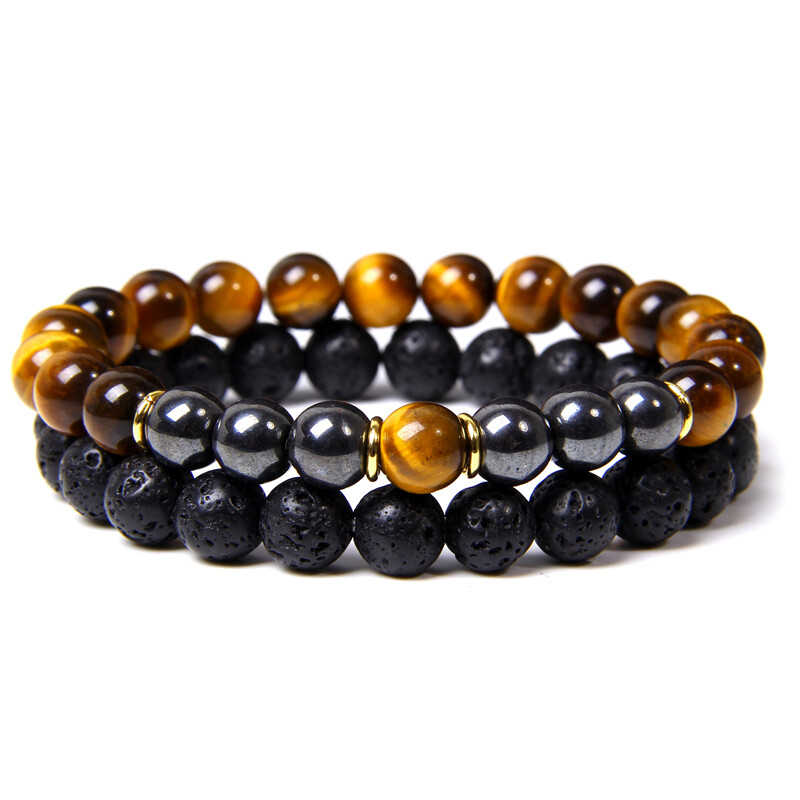 2PC/set Tiger Eye & Hematite & Black Obsidian Bracelets Men Women Natural Stone Magnetic Therapy Weight Loss Bracelet