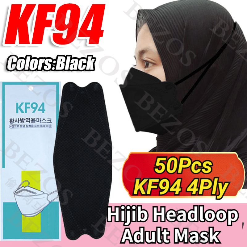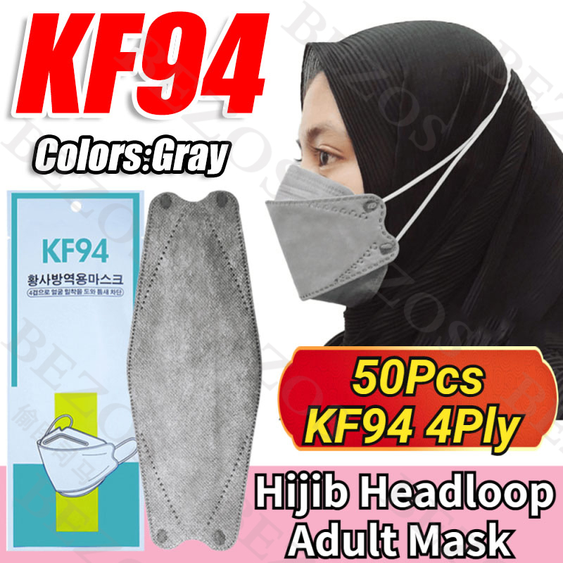 【Hijab】14Colors 50PCS KF94 Headloop Hijab Korean Topeng Muka Headloop 4Ply High Quality FaceMask Topeng Muka Tudung Kpop Kdrama Protection Korea Respiratory Products Cover Prevent Influenza and Antiba