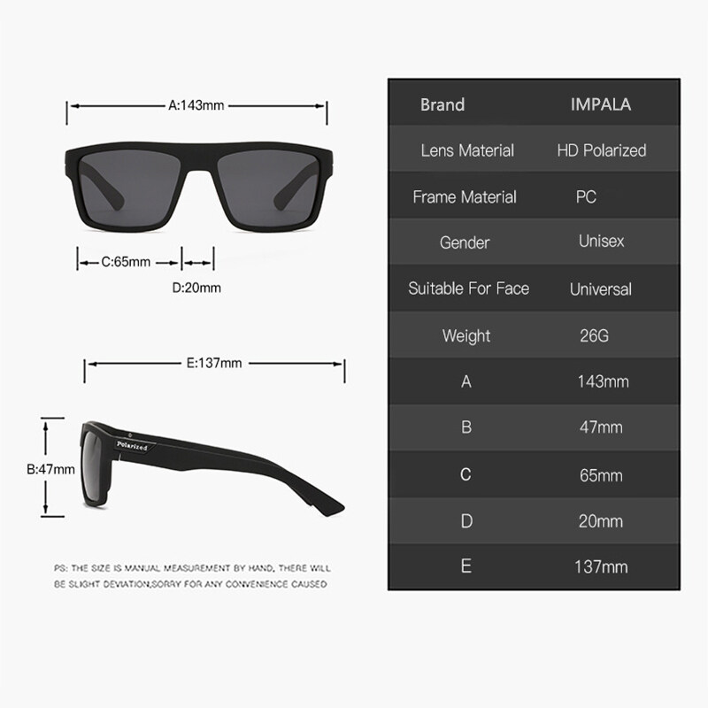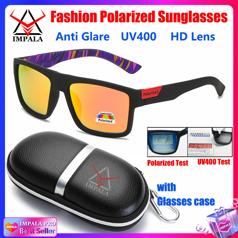 IMPALA PG1660L Fashion Men Women Polarized Sunglasses Anti Glare Driving Fishing Sun Glasses for Men Korean Style Black Spectacles UV400 Lens with Glasses Case