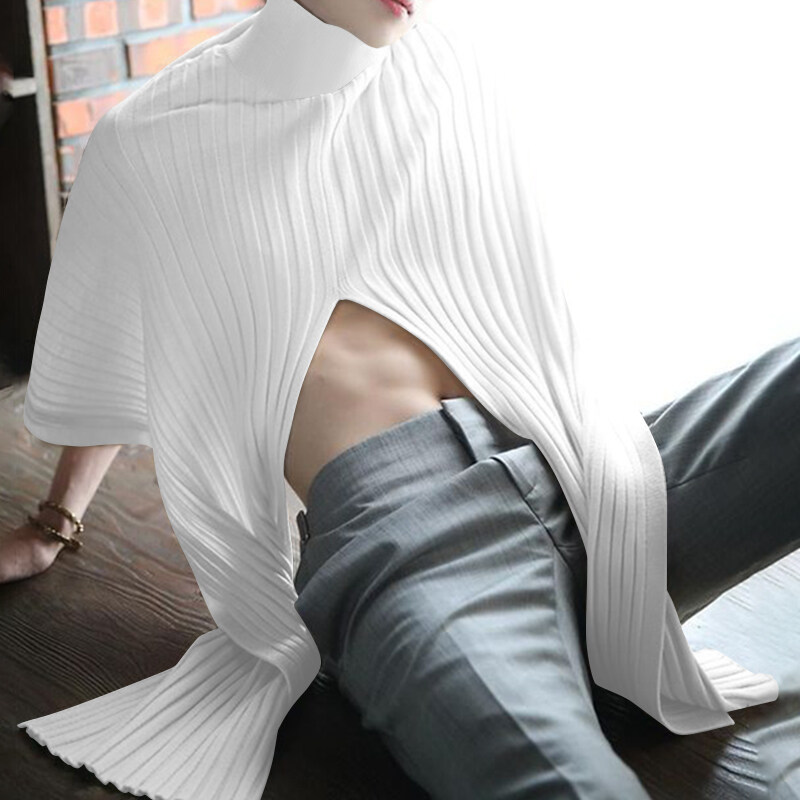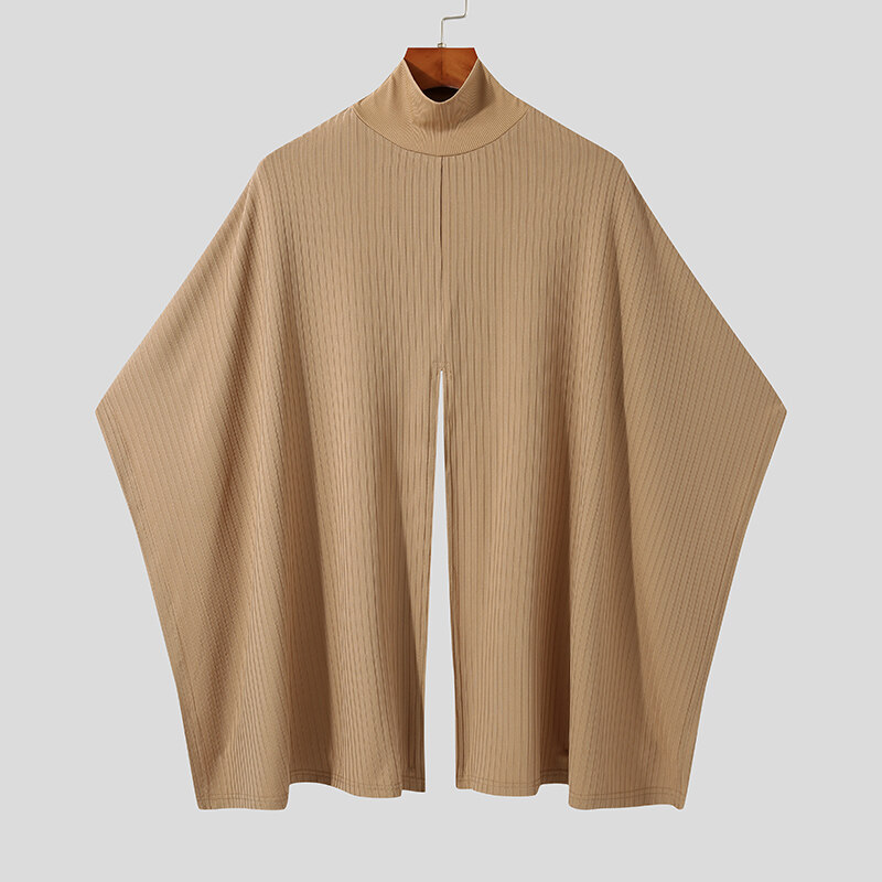 Beehoo INCERUN Mens Loose Poncho Cloak High Neck Knitwear Cape Shirts Short Sleeve Hippy Tops