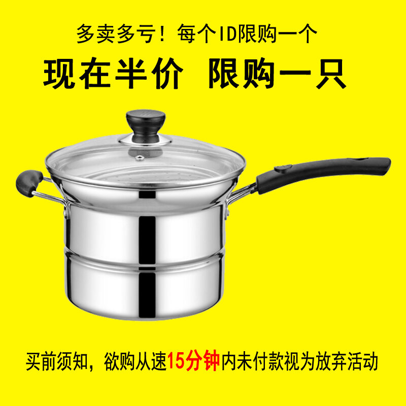 Stainless Steel Multi-Functional Noodle Pot Milk Pot Thickened Soup Pot Small Fryer Cooking Pot Induction Cooker Gas Universal Pot