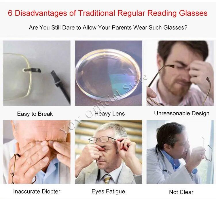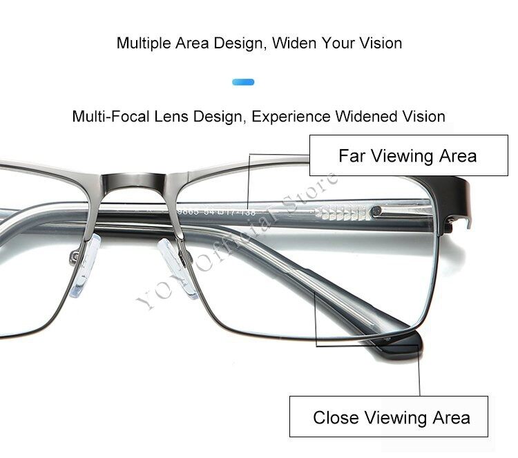 Suitable Gender: Men and Women Weight: About 17g (Lens Excluded) Temples: Metal + PC Lens: Resin Features: Fashionable Multi-Focal Reading Glasses