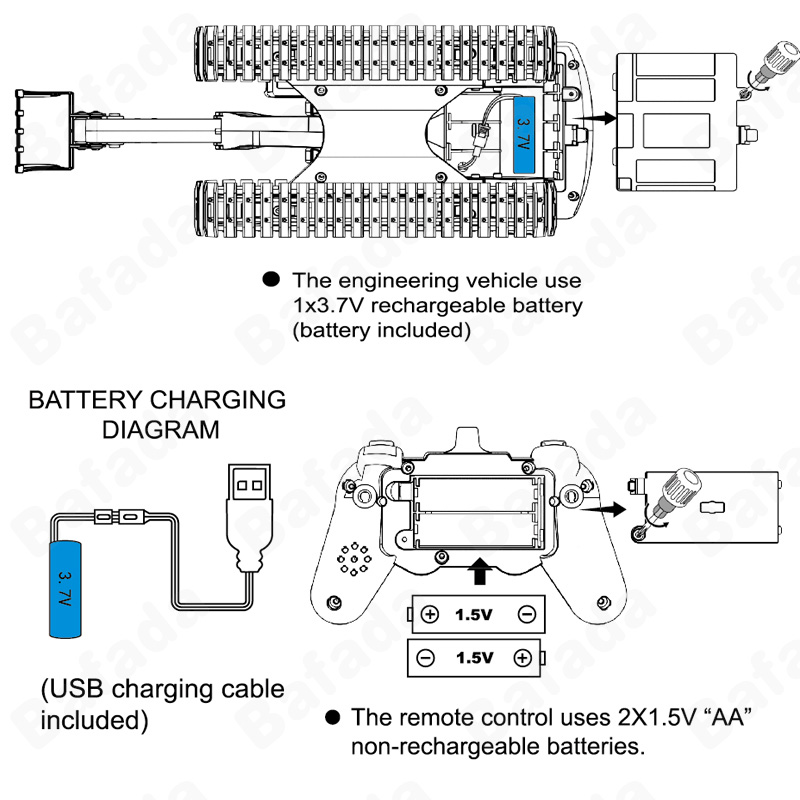 Bafada 1:20 High Simulation Remote Control Excavator RC Crawler Tractor Toy,270° Rotating Truck RC Car,6 Channel Construction Vehicle with Flashing Lights