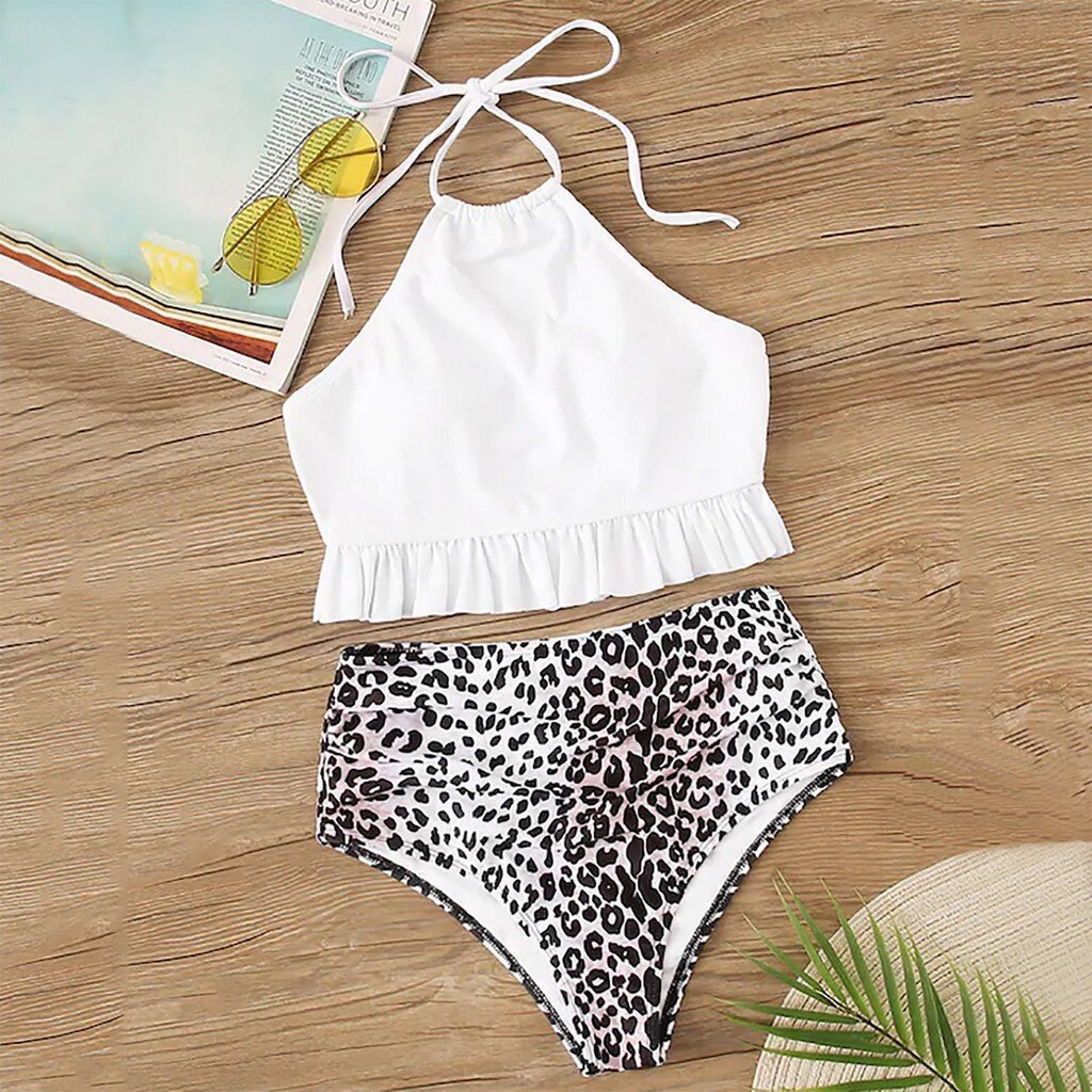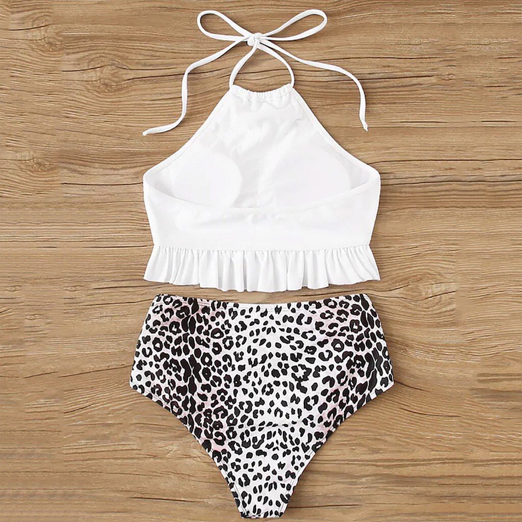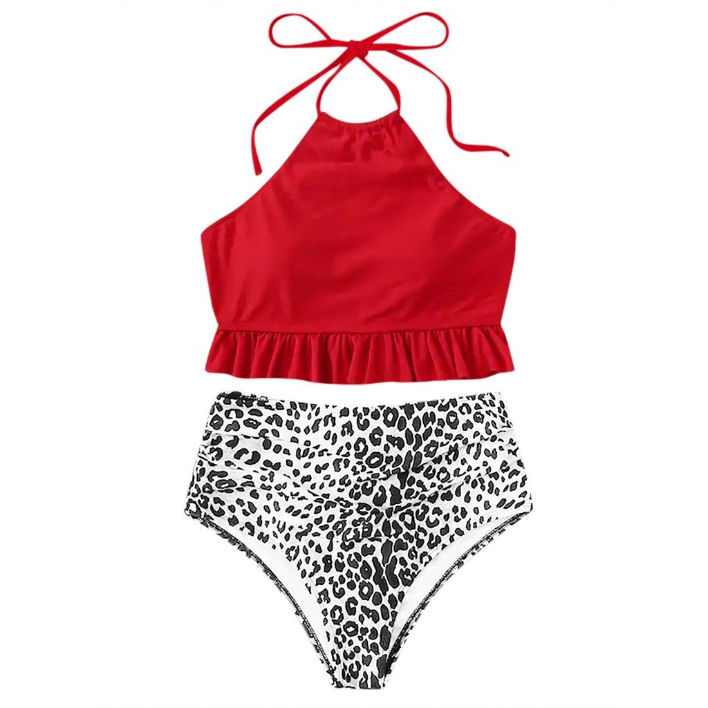 Women Striped Push Up High Cut Hight Waist Halter Bikini Set Two Piece Swimsuit