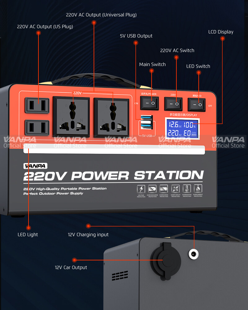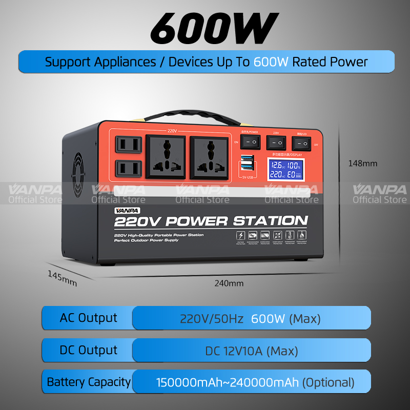 VANPA Portable Power Station 300W/600W AC 220V Output Large Capacity Battery Powerbank For Camping Emergency Backup Power