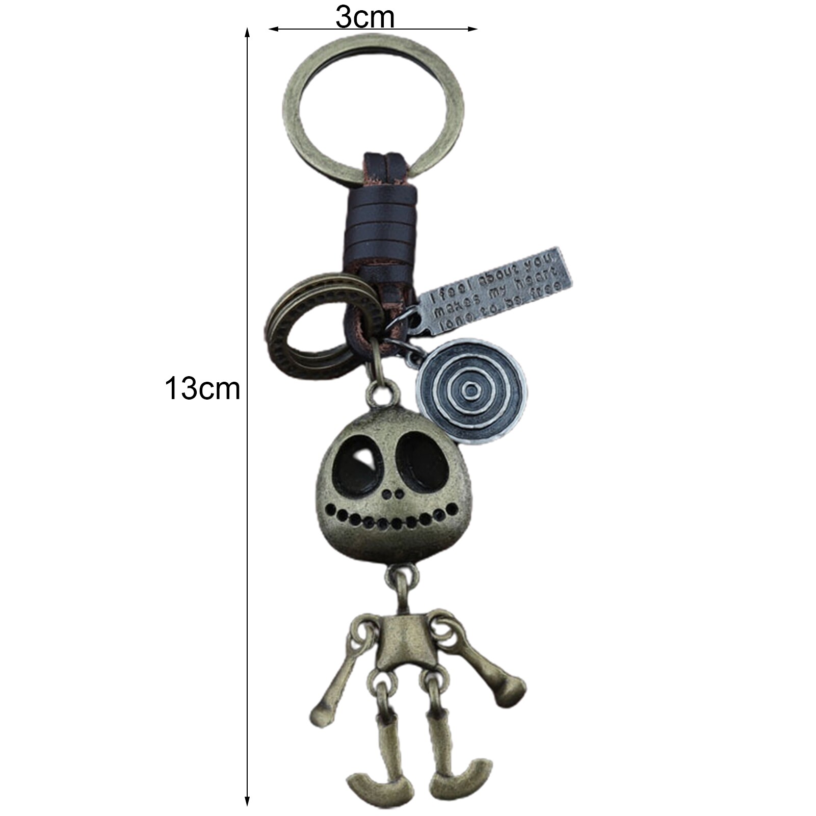 The length included keyring is 13cm, and the external diameter of the keyring is 3cm.