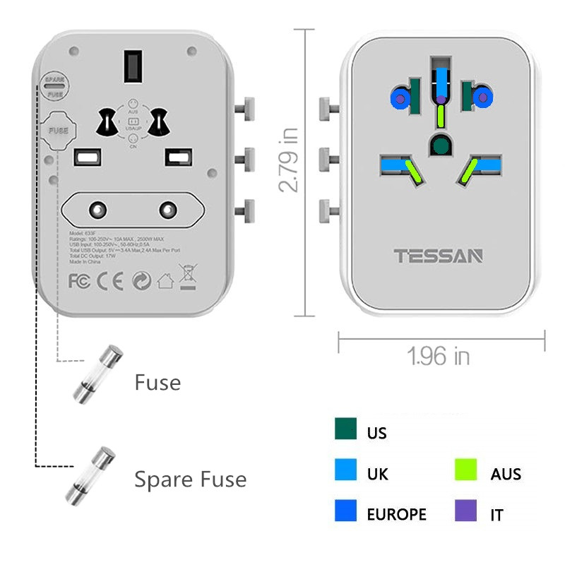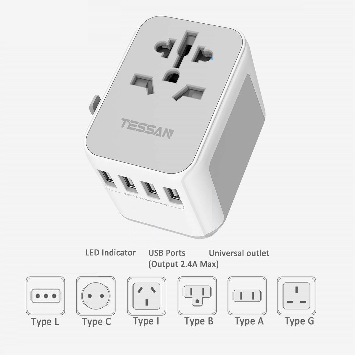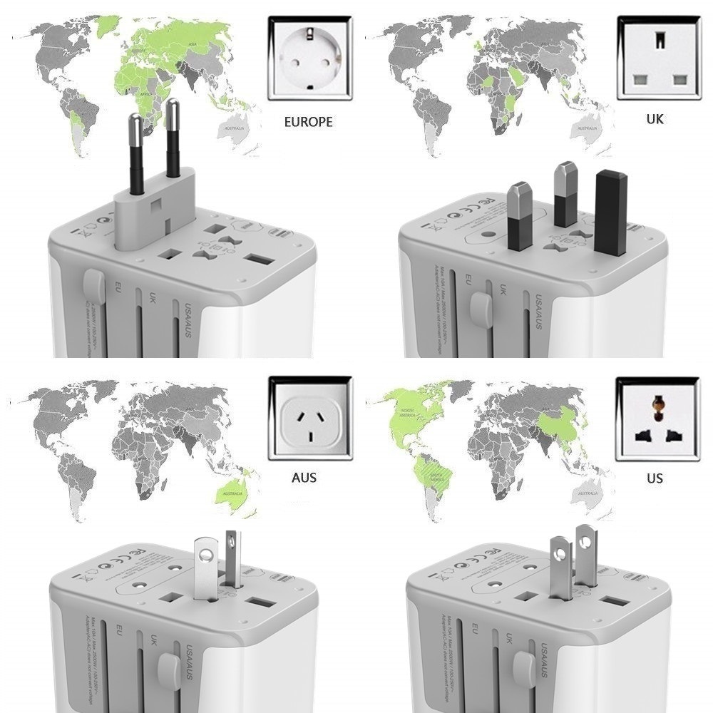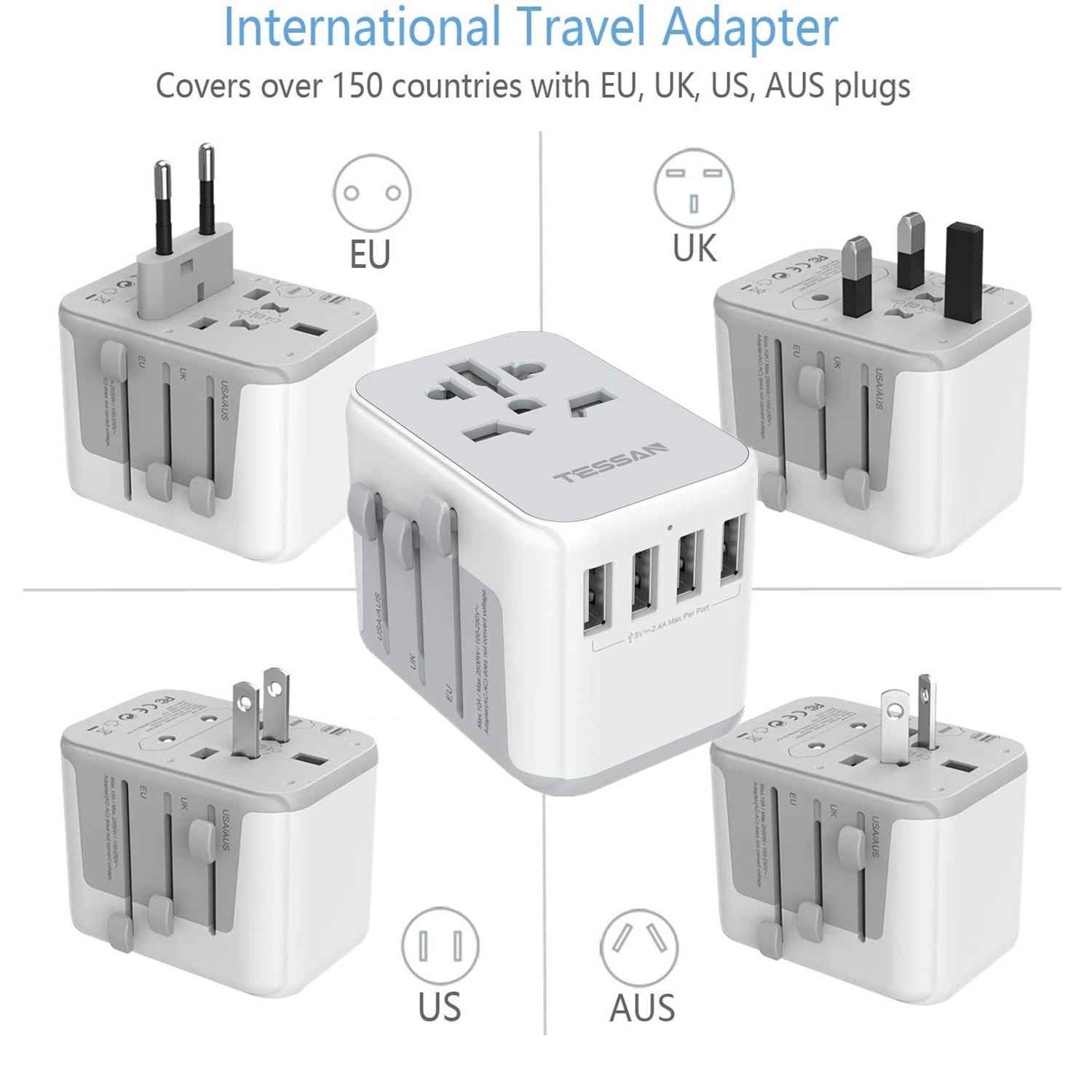 International Travel Adapter with 4 USB Outlets + 1 Universal Outlets, TESSAN Socket European Power Plug Adaptor Worldwide All in One Wall Charger Converter Travel Plug USB Charger Power Adaptor for