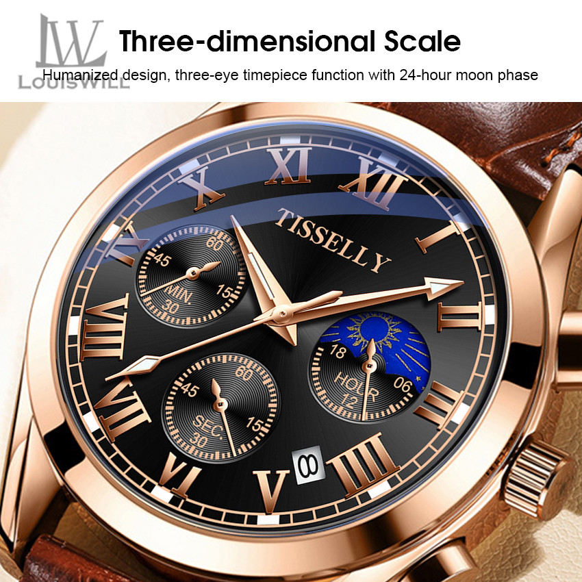 LouisWill Watch Men Watch Men's Watches Fashion Watch Original Quartz Watch For Men Quartz Men's Watches Waterproof Watch Business Watch Calendar Outdoor Sport Wristwatch