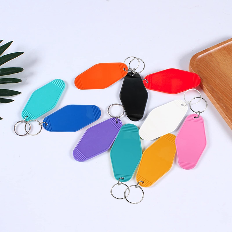 Sublimation Keychain Blank - Made from vintage plastic, this key tag is lightweight, sleek and durable, the diamond-shaped design is designed to bring back the nostalgia of old motels/hotels; double jump metal rings keep keys safe; add a of color with this Add a vintage touch to your keys with a 10-color retro style motel key ring.