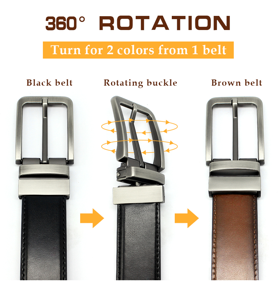 COWATHER Men Reversible 3.3cm Leather Casual belts with Genuine Leather Classic Belt for Men Dress Fashion Everyday Sport belts. One Belt Double-sided Colors Rotated to wear