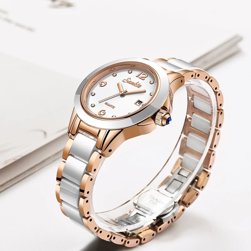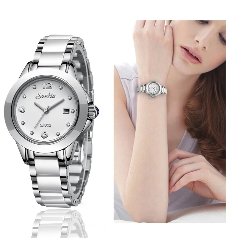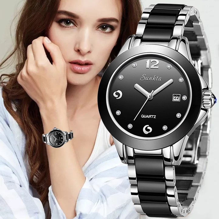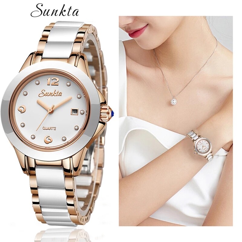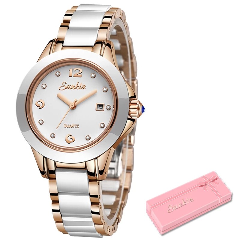 SUNKTA 2021 Fashion Watches Women ceramics Ladies Bracelet Creative Waterproof Watches For Women Quartz Clock + Box