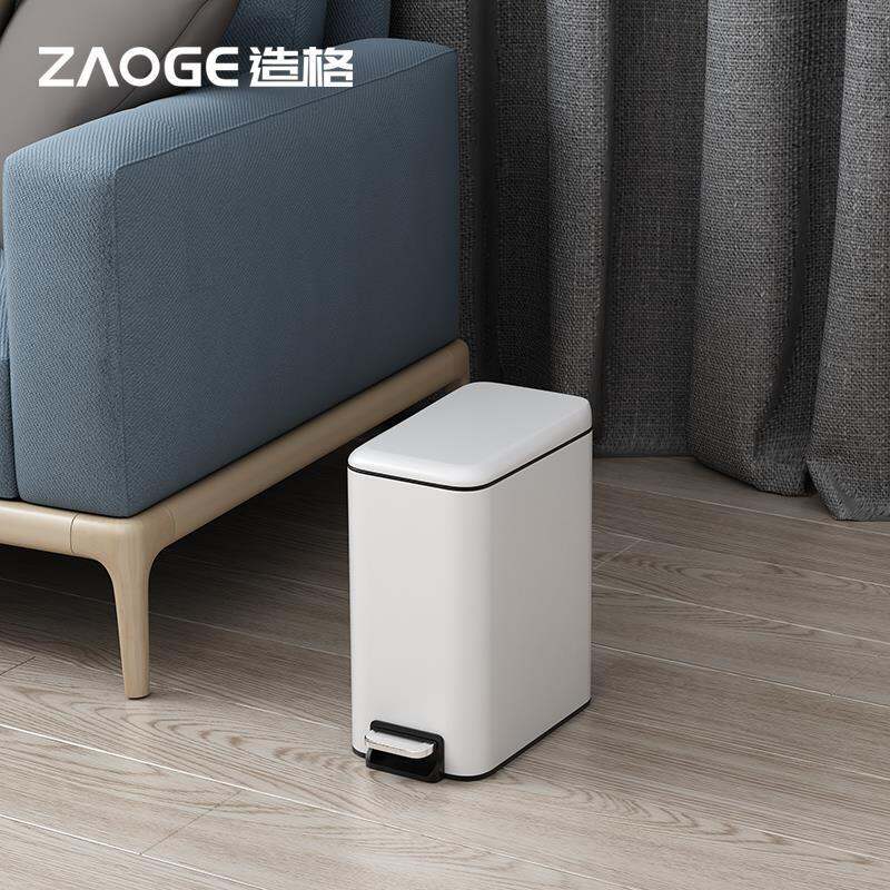 Rectangular Narrow-Slit Stainless Steel Trash Can, Household Toilet with Lid, Toilet Pedal Type, Small Foot with Lid