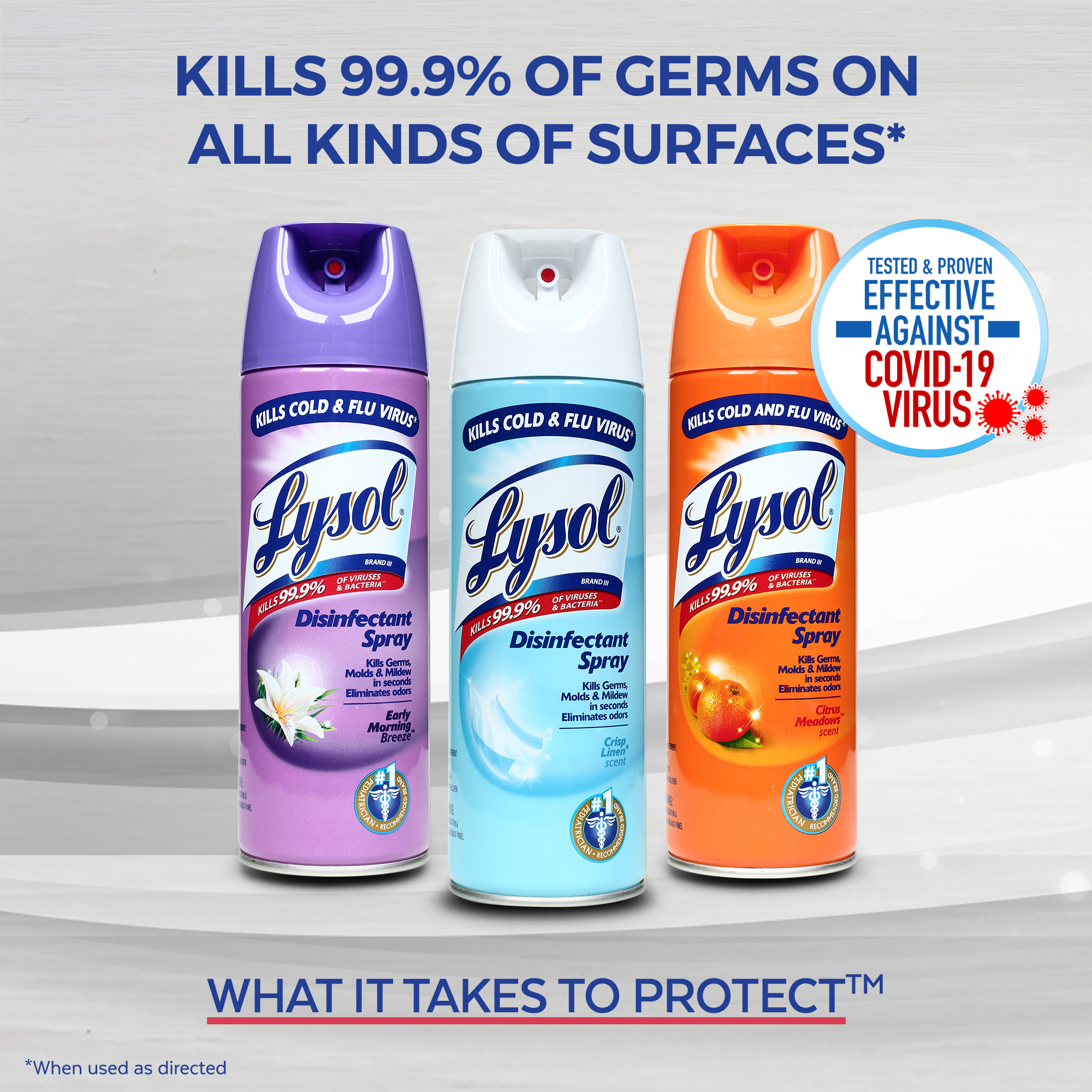 Lysol Disinfectant Spray eliminates the following bacteria, fungi and viruses on hard non-porous surfaces*: