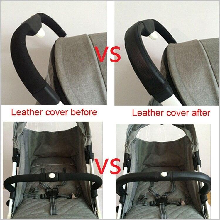 4pcs/set baby stroller accessories handle leather cover stroller armrest leather protective case pram armrest leather cover for yoyaplus stroller and more prams (Gray 4 pcs/set)