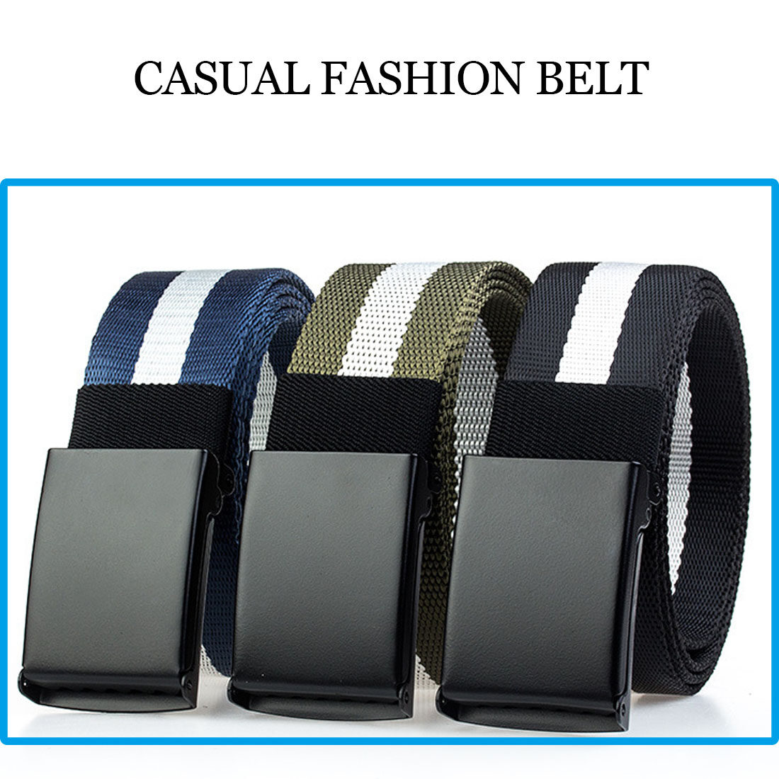 Men's Cut to Fit Golf Belt Casual Outdoor Canvas with Black Military Flip Top Buckle