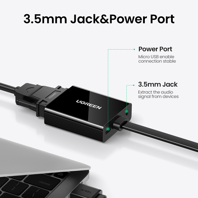 UGREEN 25CM HDMI to VGA Adapter 1080P 60Hz Digital to Analog Video Audio Converter Cable HDMI VGA Connector for Xbox 360 PS4 PC Laptop TV Box-Black