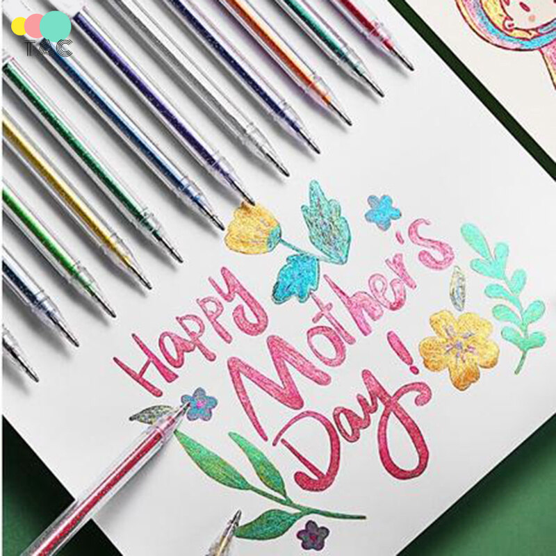 TAC 12 Colors Glitter Gel Pen Set Children Drawing Color Highlighter for Coloring Books Craft Doodling Painting 【Fast delivery】